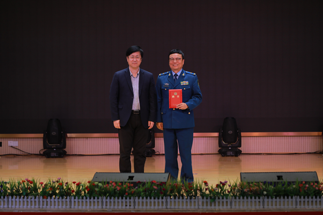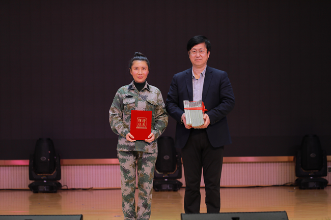 最后,院长周志宏谨代表中南林业科技大学涉外学院聘请蒋乾麟教授担任客座教授。随后,湖南军联全民国防教育基地主任李大量赠送我院一批《兵生活》。