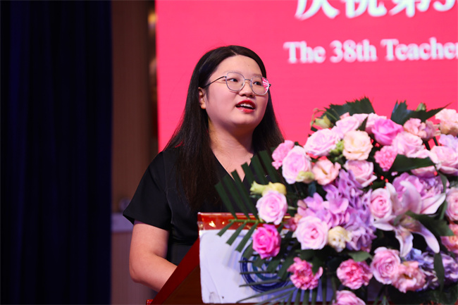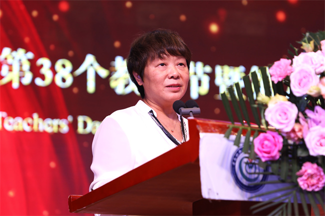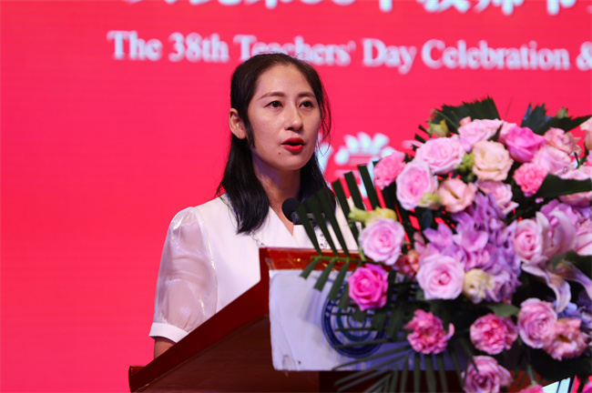 董事长朱定强在讲话中表示:“饮其流者怀其源,学其成时念吾师”,今年是我国第38个教师节,作为教育工作者,我们要深入贯彻落实习近平总书记关于教育的重要论述和全国教育大会精神,在全面建设社会主义现代化国家的新征程中勇担培育时代新人的历史使命。希望广大教师努力做精于“传道授业解惑”的“经师”和“人师”的统一者,坚持把立德树人任务落实到本职工作的各领域、各方面、各环节。继续秉持“敢闯敢试”的精神、保持“争创一流”的劲头、延续“实干为要”的作风,打造“涉外为我赋能,我为涉外加速”的精神文化。