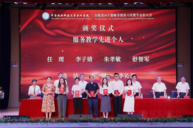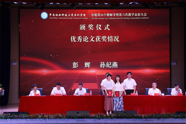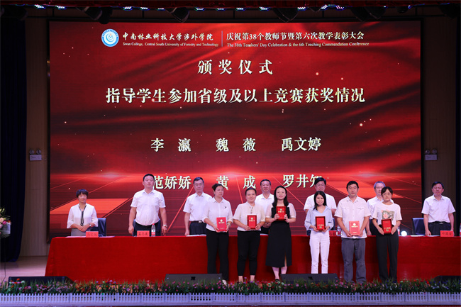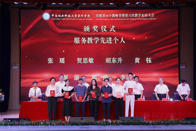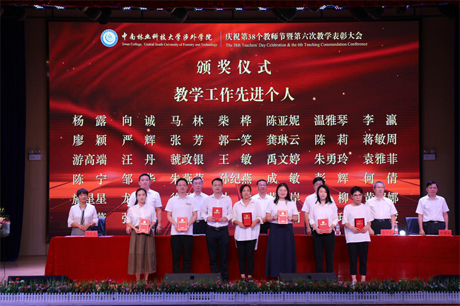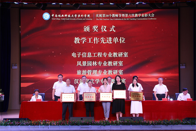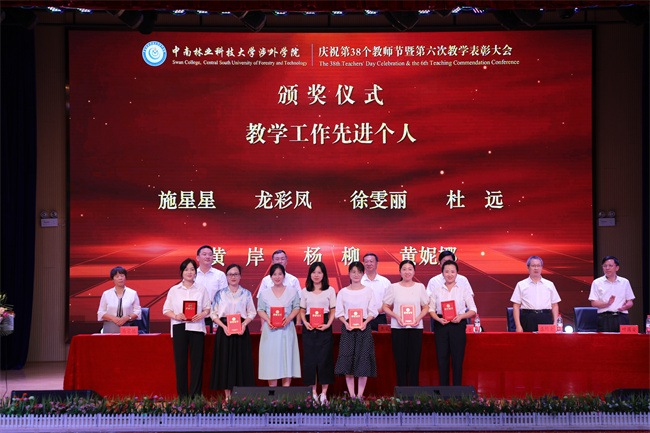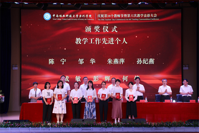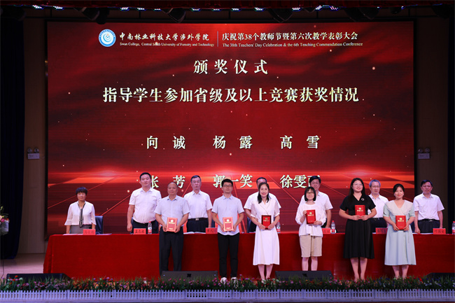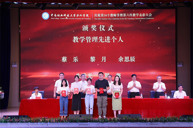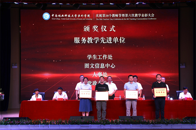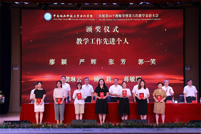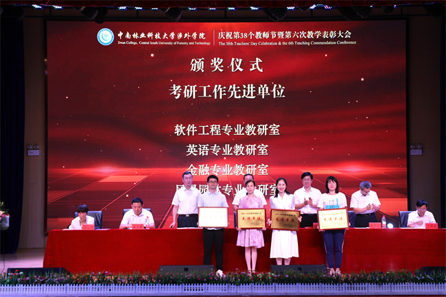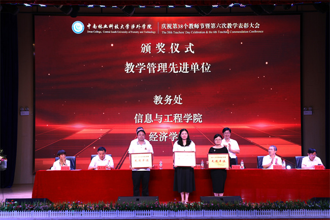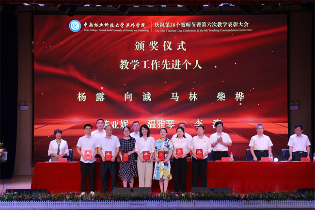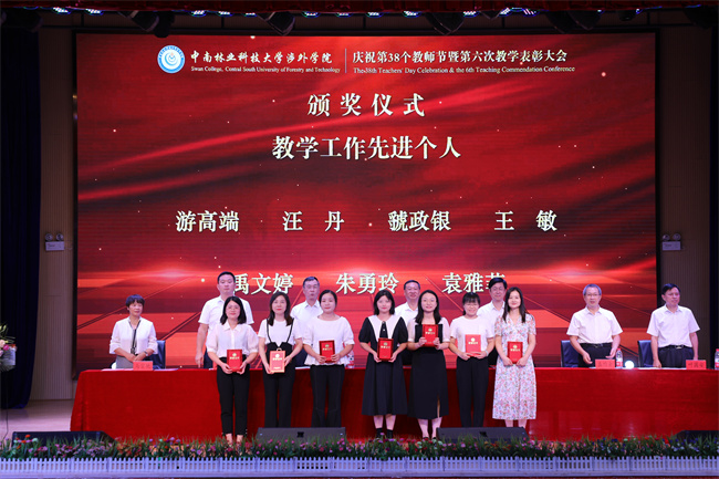 秋澄景清,硕果累累。9月8日,中南林业科技大学涉外学院庆祝第38个教师节暨第六次教学表彰大会在学术报告厅隆重举行。大会表彰了自2021年9月1日至2022年8月31日期间,在教学、科研、管理、服务等方面取得突出贡献的优秀集体及个人。学院领导朱定强、周志宏、章元日、盛均全、马宗艳、孟志波、叶国安出席大会。此次大会由副院长马宗艳主持。