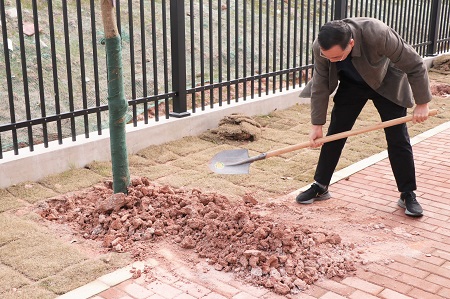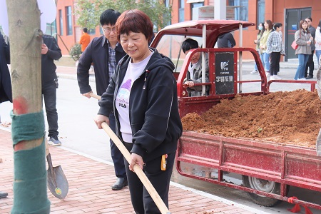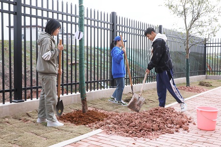 签名仪式结束后,大家前往公寓西侧植树地点,扛起铁锹,铲土填坑,扶树浇水,使得一株株新苗迎风挺立,相信在不久后的将来,他们就能成为涉外一隅的墨绿,为绿色涉外再添一抹希望与生机。