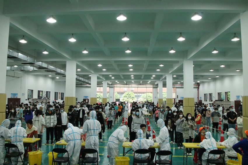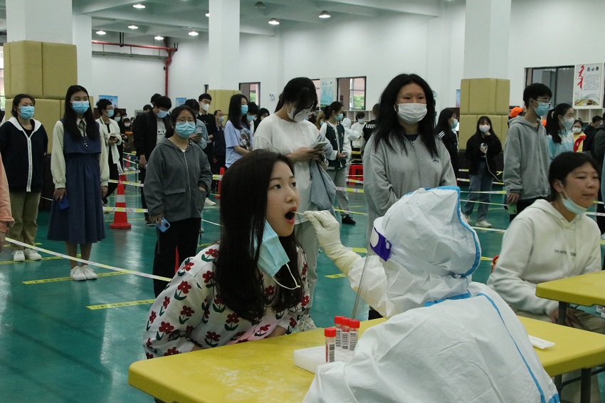 为进一步做好学院疫情防控工作,全力保障全体师生员工的安全和健康,根据上级疫情防控指挥部的要求,4月14日下午,学院按照“应检尽检,不漏一人”原则,有序开展了第五次全员师生核酸检测工作。