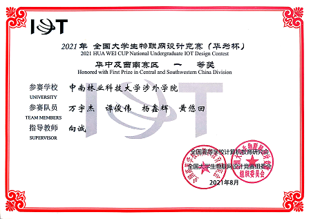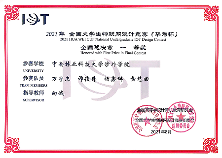 涉外学子斩获“2021 年全国大学生物联网设计竞赛全国总决赛” 一等奖