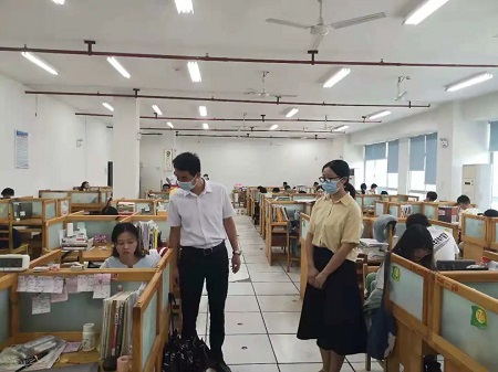 为落实防控要求,8月1日上午,学院联防联控工作小组成员在组长张康龙副院长的带领下,针对学院施工现场人员、留校考研学生、在岗工作人员等群体疫情防控落实情况进行了督查。每到一处,张康龙都会详细询问各项疫情防控措施落实情况,认真检查每日体温检测和两码查验登记情况,仔细查看防疫物资准备情况,对于存在的问题提出整改要求。督查结束后,联防联控工作小组根据督查过程中发现的问题第一时间通知相关责任单位,提出整改具体要求。