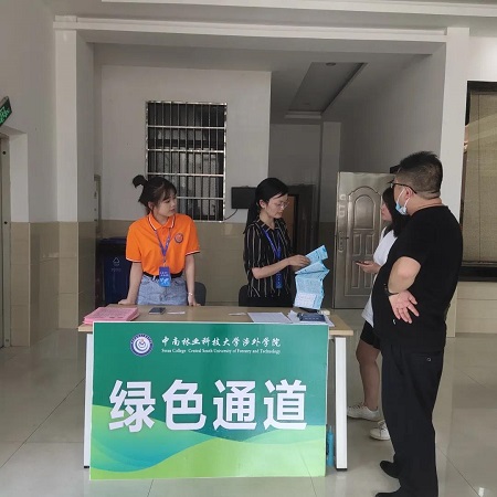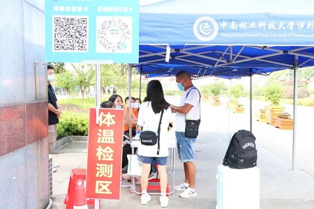 “中南林业科技大学涉外学院的新生这里走!”