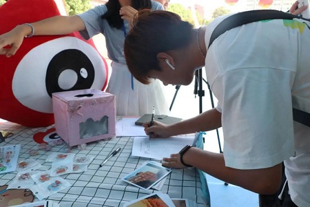 志愿者们不惧烈阳、认真细致、热情接待