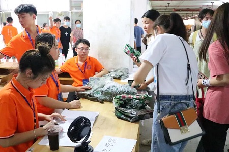 军训服领取处的志愿者们