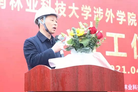 宏扬集团董事长杨绍春代表施工单位表达了重质量、守信誉、按期完成施工任务的决心和信心,并表示宏扬集团将上下一心,将中南林涉外学院新建19#、20#学生公寓打造成精品工程。