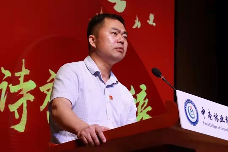 他表示此次表彰大会旨在进一步引导和激励全院青年师生凝聚正能量、实现新发展、取得新成绩,并通过表彰先进、树立典型,在新时代加强学生思想政治建设。强调要响应习近平总书记的号召,志存高远、增长知识,激励广大青年学生坚持理想、坚定信念,要勇于担当不忘初心、为国为民的历史责任,做让新时代进步、焕发新光彩的新时代青年。