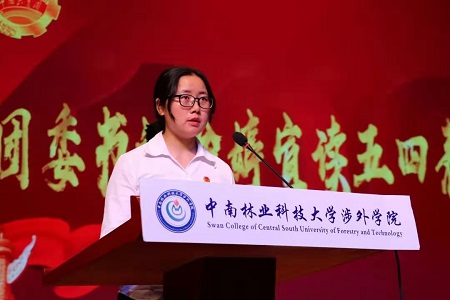 学工处副处长、团委书记徐婷宣读《关于表彰中南林业科技大学涉外学院2020-2021年度共青团先进个人和集体的决定》。
