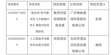 近日,教育部高等教育司下发了《教育部高等教育司关于公布2020年产学合作协同育人项目立项名单的通知》(教高司函[2021]3号),中南林业科技大学涉外学院信息与工程学院共2个项目获批立项,其中教学内容和课程体系改革建设项目1项,师资培训项目1项(详见下表)。截至目前,信工学院已有近十人次申报并立项了教育部协同育人项目。