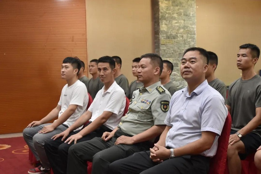 9月9日,中南林涉外学院2020年新兵入伍欢送会在望城区役前训练基地隆重举行,望城区人武部部长肖三军,学院副院长张康龙、院长助理刘诗福、后勤处副处长杨国梁、学工处刘伟光老师参加此次欢送会,为我院2020年12名应征入伍大学生送行。大会由后勤处副处长杨国梁主持。
