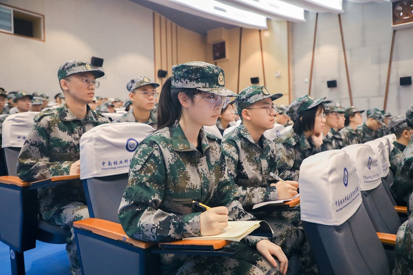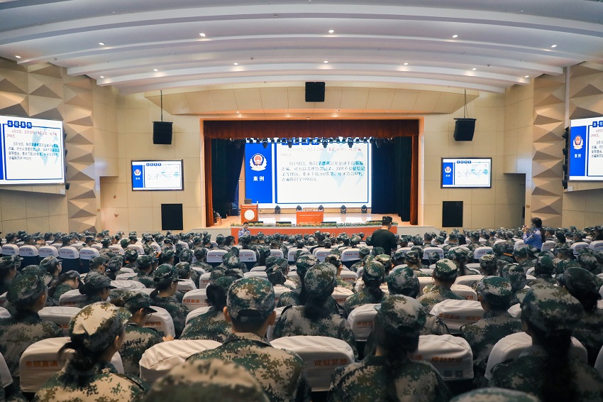 刘诗福表示“军训一阵子,受益一辈子”,为风雨无阻坚持军训的同学们点赞。此次讲座从国家安全、个人安全、交通安全、消防安全、游泳安全、饮食安全、爱情安全、套路贷校园贷安全与财产安全这九大安全展开。讲座由浅入深,并结合现实案例,生动形象、全面详细的讲解让同学们深刻意识到了安全的重要性。