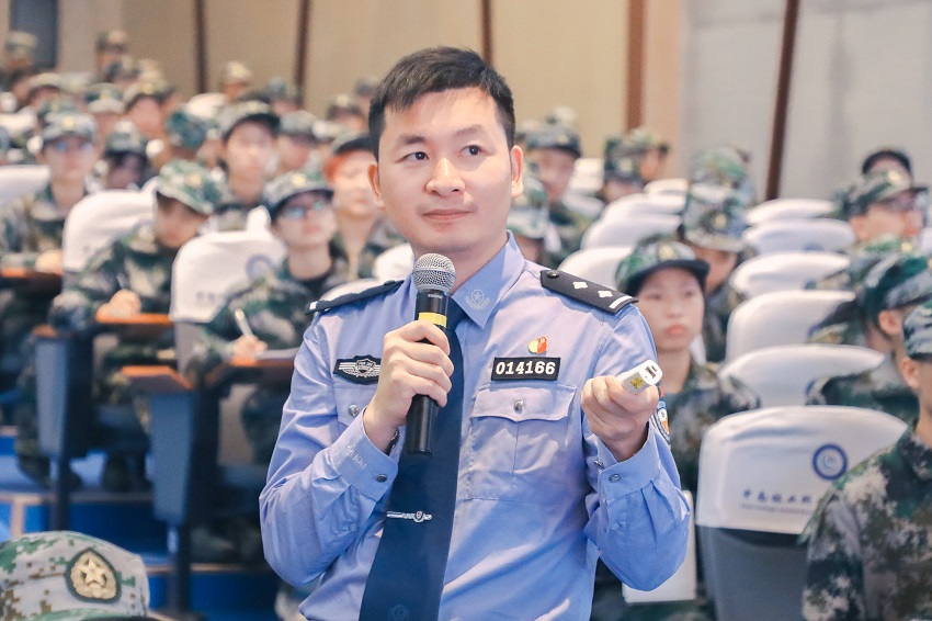 9月24日上午,望城区公安局内保大队主任张湘武一行三人来我院开展防电信诈骗专题讲座,讲座由长沙市公安局望城分局丁字派出所民警胡建成主讲,新生教官以及新生代表参加了此次讲座。