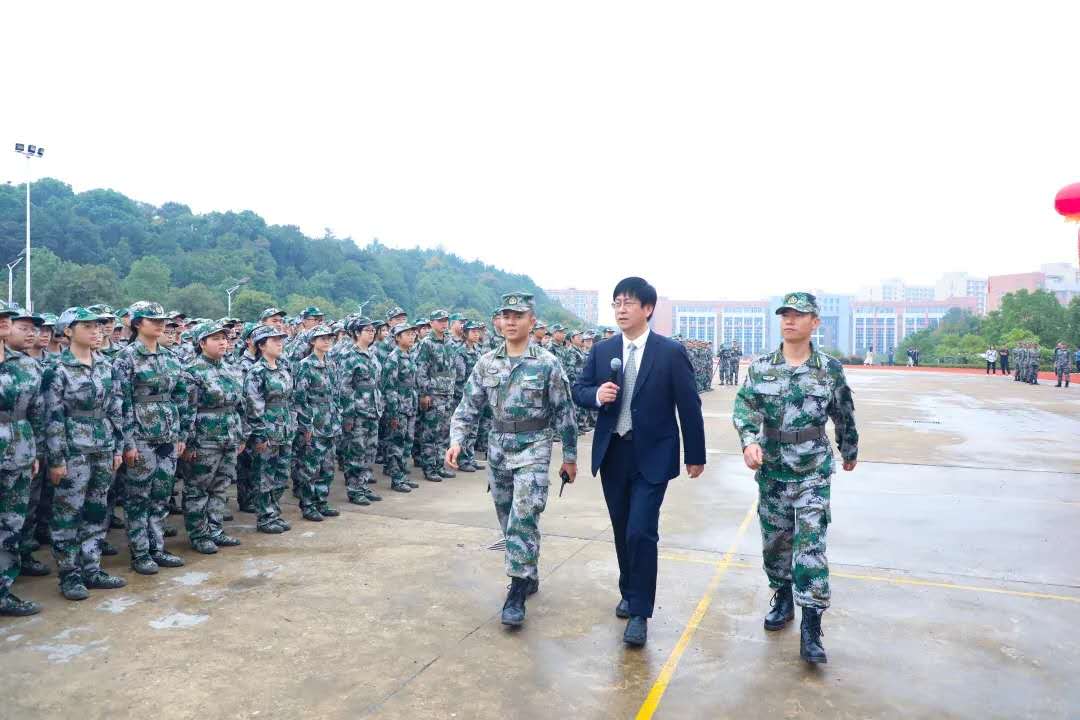 大会在庄严雄壮的升旗仪式中拉开了帷幕。院长周志宏检阅了各方阵,并向所有参训新生致以亲切的问候。
