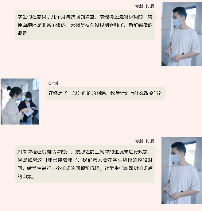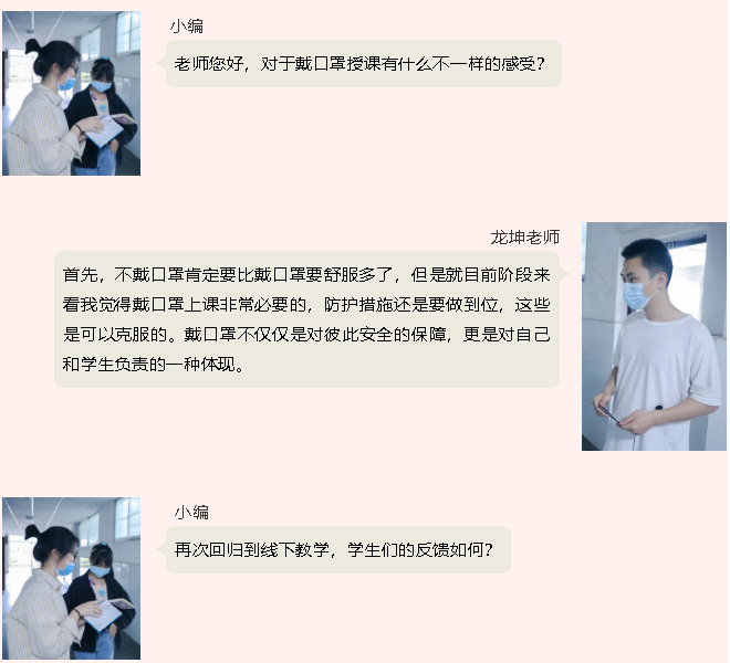 复学第一课师生精神面貌都相当不错,小编采访了传媒与艺术设计学院的龙坤老师:
