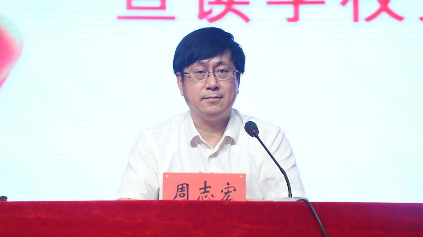 党委委员、院长周志宏同志宣读了中南林业科技大学党委组织部《关于同意涉外学院党委增补党委委员召开党员大会的批复》。