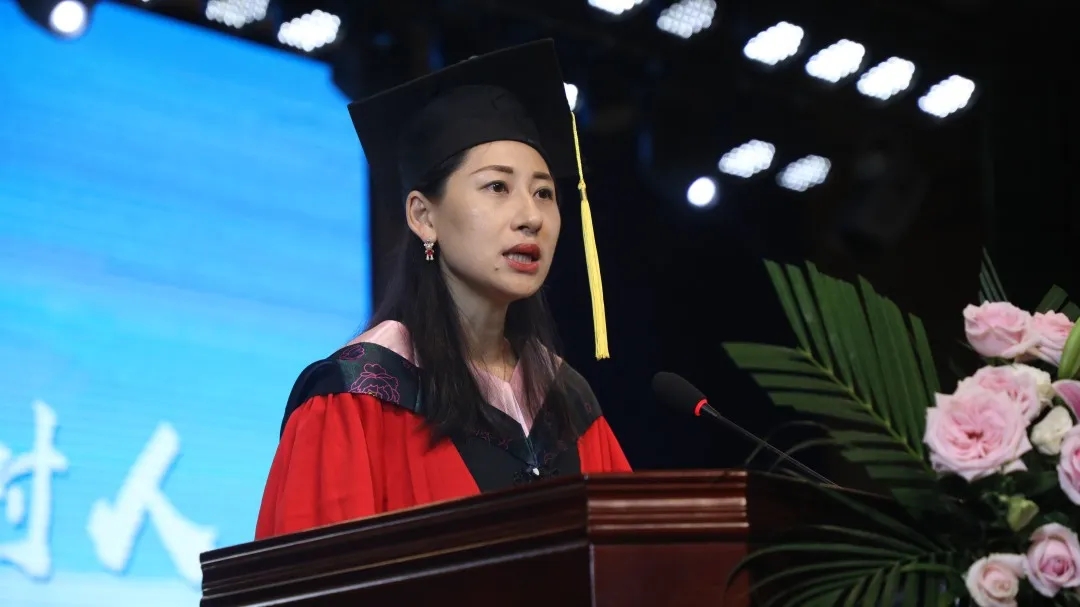 教师代表高雪发言,她提炼了祝贺、感谢、叮嘱、祝福四个关键词,发言真情实感、深入人心,在场毕业生深受感动、备受鼓舞。春风得意马蹄疾,扬帆远航正合时,希望毕业生们不负青春韶华,不负伟大时代,在祖国需要的地方绽放最绚丽的青春风采。
