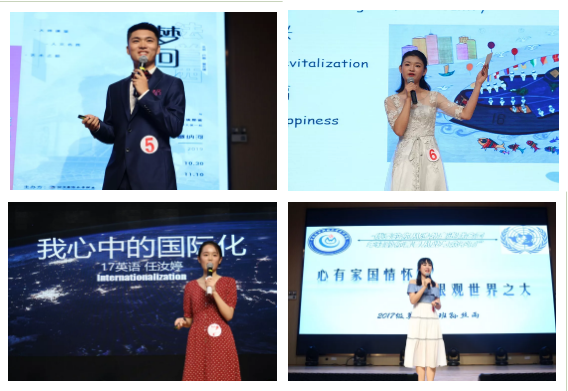 随后,各位选手通过PPT的形式以“携手国际化、共筑中国梦”为主题,进行演讲。其自信从容的表达和真诚饱满的热情展现出了当代大学生的青年领导力。紧接着,选手们带来了朗诵、舞蹈、配音等才艺表演,可谓精彩纷呈!最后,评委提问环节,选手们针对评委老师提出的问题,随机应变,充分表达了自己的观点,赢得了全场一阵又一阵的掌声。