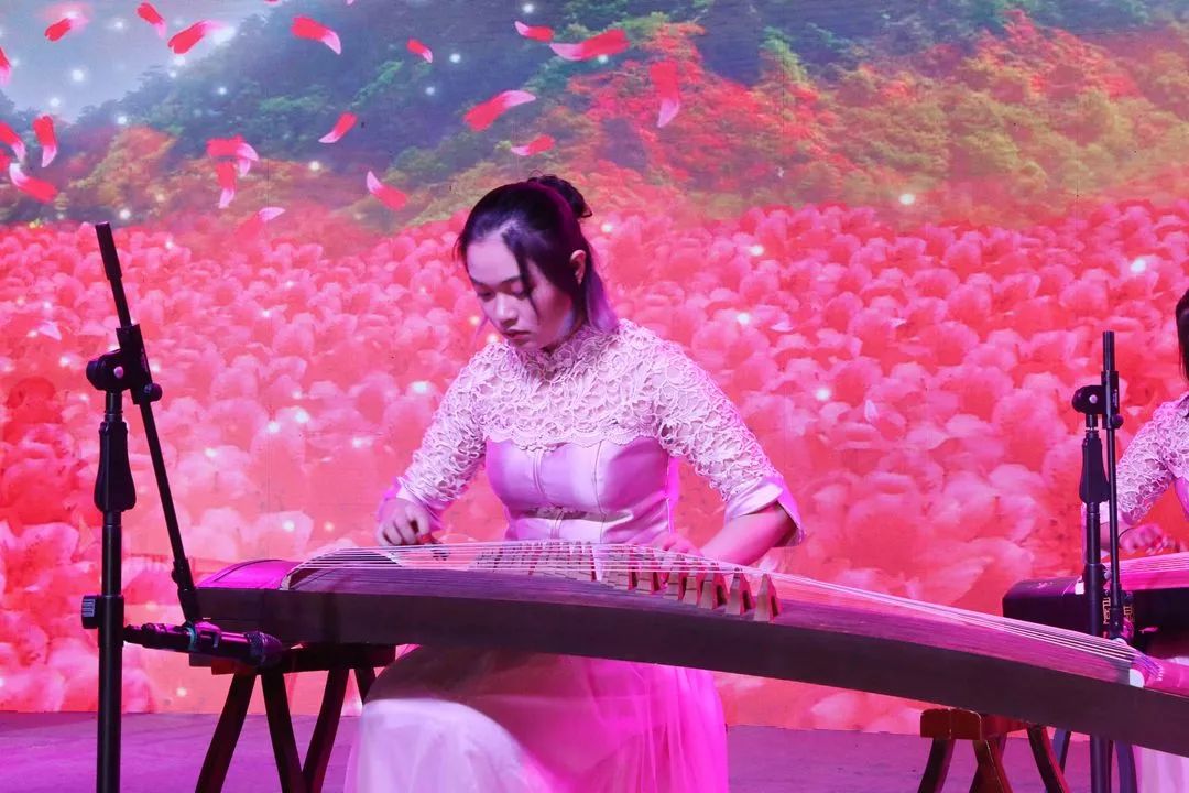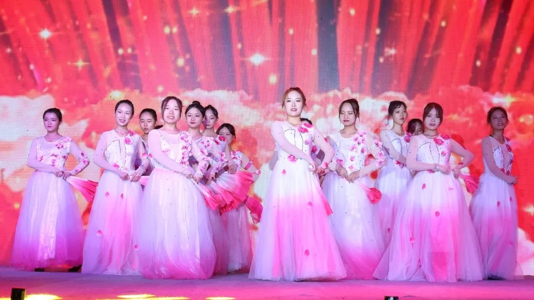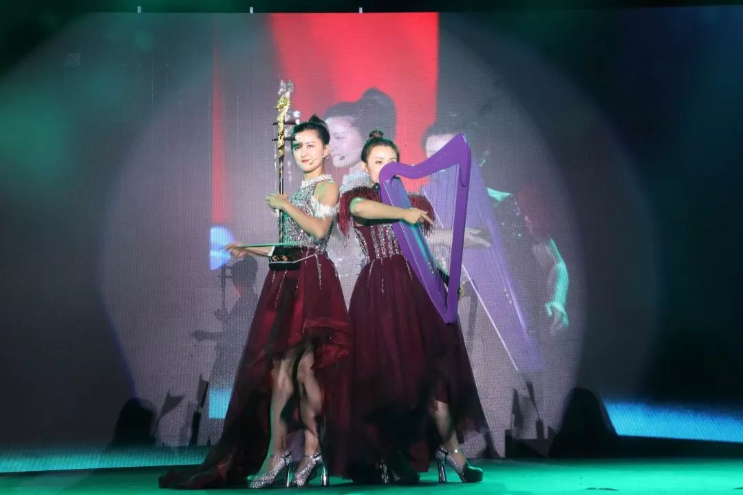 起舞放歌,为祖国庆生,舞蹈《鲜花献祖国》、《花开中国》以绸扇起舞、伞下旗袍风姿,华丽开场。随后,由国内首个二胡与竖琴结合的赤焰组合演奏的《山河美、新卡农》,尽显传统与现代以及中西方文化的完美融合。学院董事长朱定强和徐雯丽老师合唱的《我和我的祖国》,唱出了涉外师生对伟大祖国的美好祝愿和奋发图强的新时代精神。此时,夜空瀚海星辰,舞台灯光闪耀,伴随着飞扬的歌声,大幅国旗从观众席徐徐展开并缓缓向舞台漂移,国旗下的中南林涉外学子纷纷伸出双手触摸五星红旗,“我与国旗同框”的场景感染着在场的所有人,数千名观众的掌声掀起了晚会的高潮。