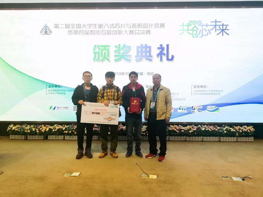 10月20日,2019年第二届全国大学生嵌入式芯片与系统设计竞赛暨第四届智能互联创新大赛全国总决赛在南京江北新区胜利闭幕。由我院向诚副教授指导的2017级电信专业学生余峰、彭自成、刘宇轩等同学组成的“永不言败”队制作和提交的作品——智能海水淡化系统获全国三等奖。