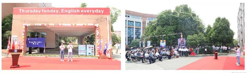 随后,学院董事长朱定强,副院长盛均全、马宗艳,外国语学院院长彭爱和一起为英语角揭幕。