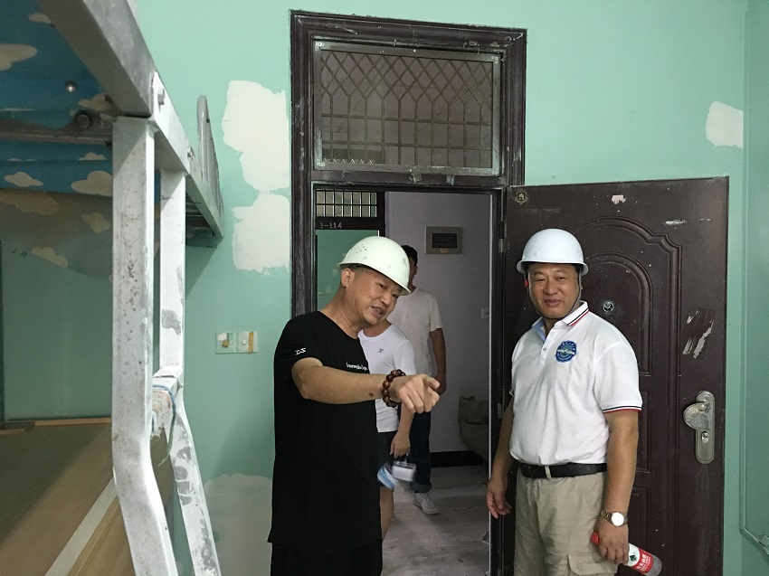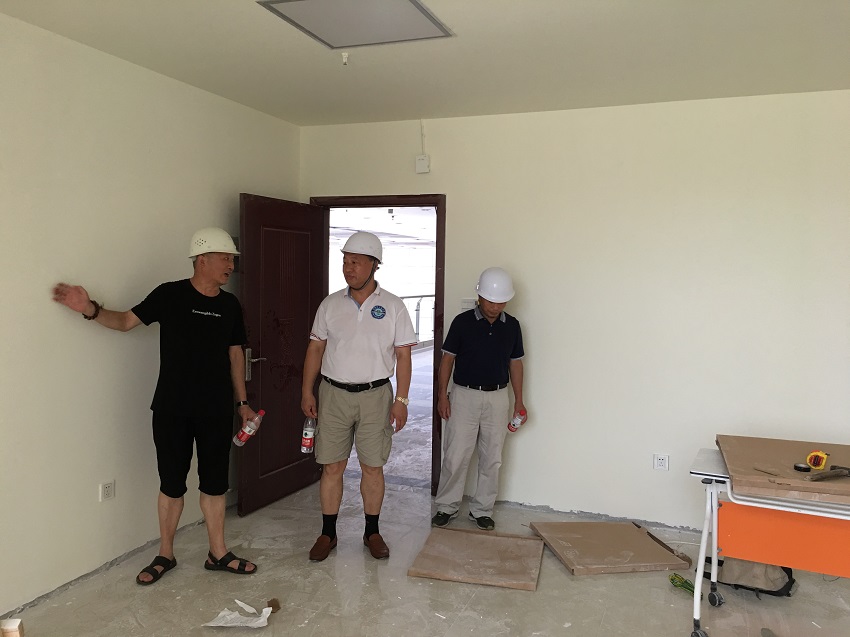 董事长朱定强一行先后深入到学生一楼食堂、学生公寓、行政楼国交接待室等地,询问了解有关维修改造工程实施进度,仔细听取了相关负责人的工作汇报,并就施工进度、安全及质量情况进行了详细检查。朱定强董事长结合现场检查情况指出,各项目维修、改造工作要提高大局意识,按照学校整体工作部署,细化工作措施,抓好工程质量,确保工期进度。他强调,各施工单位要进一步加强施工人员及现场安全管理,做好场地围护等安全规范操作,细化文明施工措施。