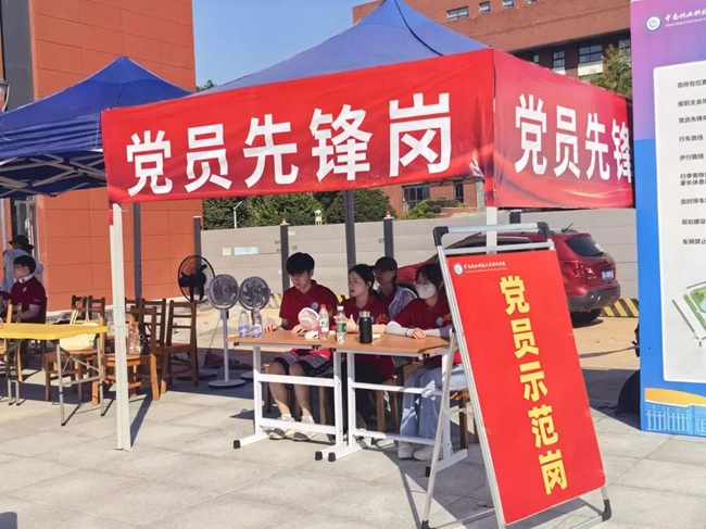“我们希望新生一出站就能感受到学校的温暖,这样能帮助他们消除陌生感。”一位志愿者说道。校园内,迎新氛围热烈而有序,校门前悬挂着“党员先锋岗”红色条幅的服务台格外醒目,师生志愿者们穿梭在人群之中,为新生提供引导和答疑服务。