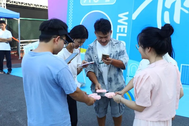 报到现场,各二级学院纷纷推出创意迎新举措,精心布置的迎新点成为现场 “热门打卡地”人头攒动,氛围热烈,定制钥匙扣、主题手机支架、学院 IP 行李牌、创意漆扇、手工书签…… 一份份别出心裁的 “专属迎新礼”承载着学院对新生的欢迎与祝福,传递到每一位学子手中。