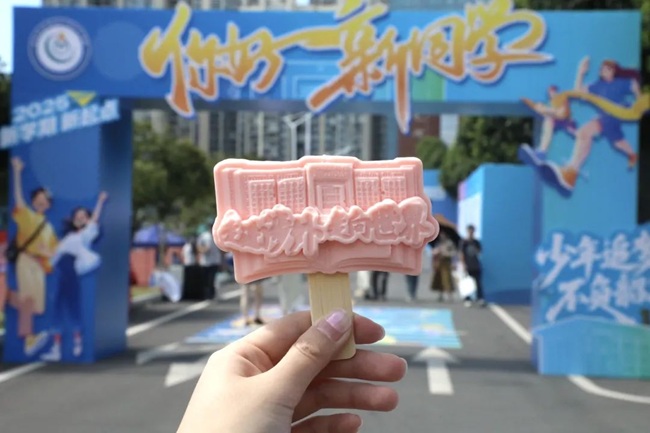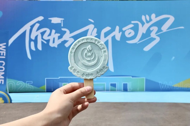 今年迎新季,学院延续宠生传统,为新生们精心准备的“萌新见面礼”——文创雪糕4.0,以马卡龙色系和多元口味为新生带来夏日清凉。三款雪糕造型分别融入新校门、图书馆、体艺馆、桃花谷等校园标志景观,并镌刻“我爱中南林涉外”“走进涉外、走向世界”等字样,呼应学院“高端化、全球化、个性化”办学理念。