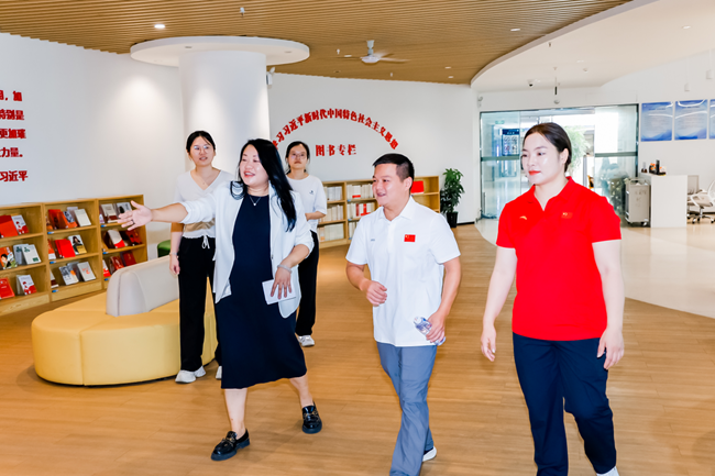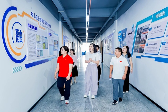 “太惊喜了!没想到下课路上居然遇见了奥运冠军!”行程途中,同学们激动之情溢于言表。在院领导、相关部门负责人及师生代表陪同下,龙清泉、向艳梅一行参观了艺术展厅、大经管实验室和图书馆等处,实地感受学院优良的办学条件和优美的校园环境。在艺术展厅,嘉宾驻足观看学生创作的设计及多媒体艺术作品。随后,他们来到大经管实验室,听取实验教学平台的相关介绍,在图书馆了解阅览环境及智慧服务系统。