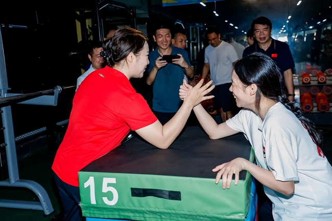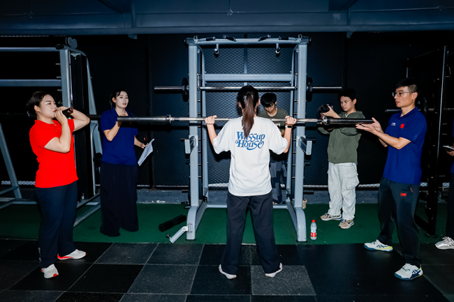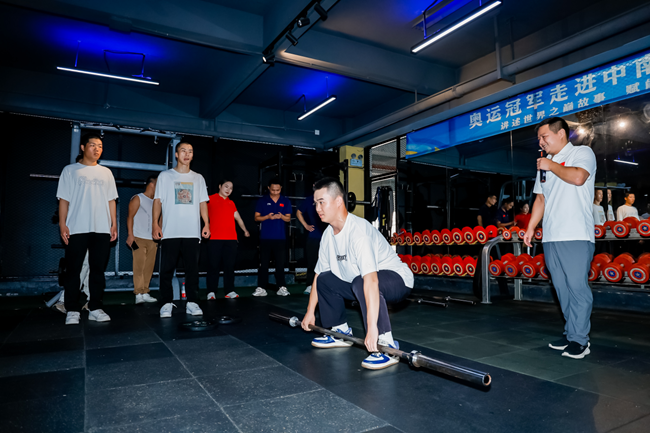 校园参观结束后,奥运冠军龙清泉、向艳梅前往体育学院进行体育专业指导交流活动,他们分别为师生们现场演示核心力量训练、下肢力量训练动作技术指导。龙清泉就身体素质训练提出专业建议,帮助同学们掌握更加科学、系统的锻炼方法。“抬头挺胸往前看!”向艳梅一边示范抓举,一边鼓励同学们在日常训练中注重动作规范和安全意识。