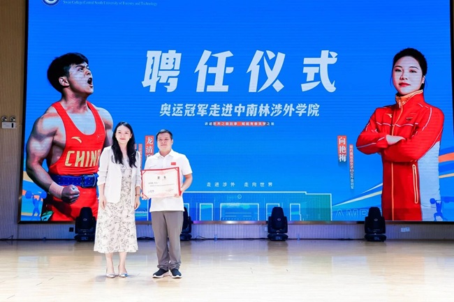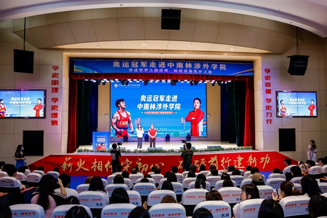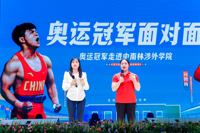9月11日,中南林业科技大学涉外学院举行“奥运冠军进校园”主题活动,邀请北京、里约两届奥运会男子举重56公斤级冠军龙清泉,里约奥运会女子举重69公斤级冠军向艳梅走进校园,与六千余名师生零距离交流互动,分享征战世界赛场历程,传递中华体育精神和家国情怀,活动以“讲述世界之巅故事,赋能青春筑梦之旅”为主题,激励青年学子敢于有梦、勇于追梦、勤于圆梦。