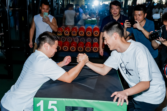 与奥运冠军掰手腕是什么体验?到了大家最为期待的互动环节——腕力挑战赛。两位冠军轮流与同学们“过招”,引来阵阵掌声和欢呼,“加油!加油!” 的助威声响彻场馆。