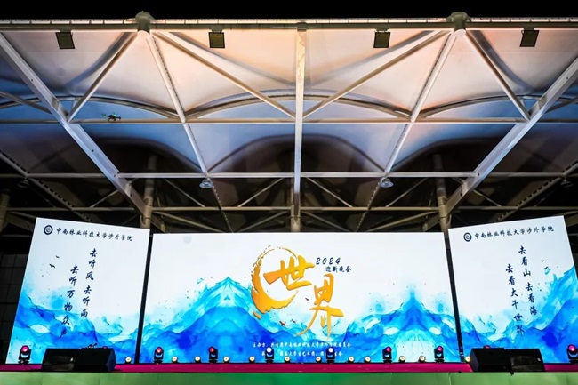 迎新晚会分为“初入校园的懵懂青涩”“展现湖南独特的文化根基”“走向世界的美好愿景”三个篇章,以“世界”为主题,涵盖民谣歌舞、朗诵、歌唱等多种文艺演出形式,展现了充满国际活力与魅力的校园新气象。