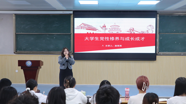 10月24日,第21期发展对象培训班开班仪式后,第一课由管理学院党总支副书记赵双双老师为同学们讲授“大学生党性修养与成长成才”专题党课。赵老师围绕“党性修养是一辈子的事”“强化党性修养,做到思想入党”“从青年毛泽东身上找克服焦虑的办法”“当代青年的信仰——清澈的爱,只为中国”四个主题展开讲解,要求同学们要不断提高自己的思想政治素质,努力成为有理想、敢担当、能吃苦、肯奋斗的新时代好青年。