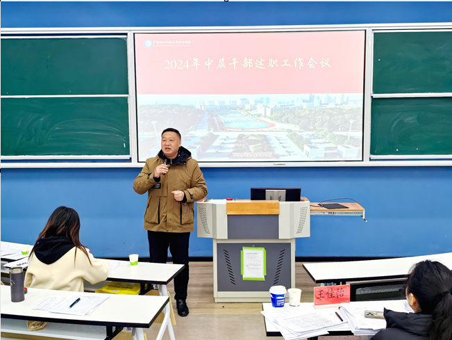 2024年12月24日上午,我院2024年度中层干部述职工作会议在智信楼336教室举行,全体院领导、全体中层干部及各单位教师代表参加了此次会议。会议由董事长朱定强主持。