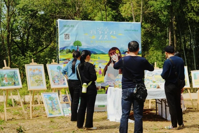 艺术教育破壁,让“数智”作品出圈。作为湖南省高校艺术教育服务乡村振兴的创新实践,本届视觉艺术展以 “创想艺术之梦,发现茶亭之美” 为主题,顺应茶亭镇当地 “花海经济 + 文旅融合”的发展趋势,历经数月筹备,中南林涉外学子广泛挖掘了当地生态资源、乡村民俗等特色IP,用专业眼光探究茶亭底蕴 ,一幅幅 “艺术 + 科技 + 乡村”相融合的设计作品不仅吸引了众多游客的目光,更探索出了一条用艺术语言讲述乡村故事,以数字化技术激活乡村文化基因的长效发展模式,助力乡村旅游、文创产品开发等相关产业发展。