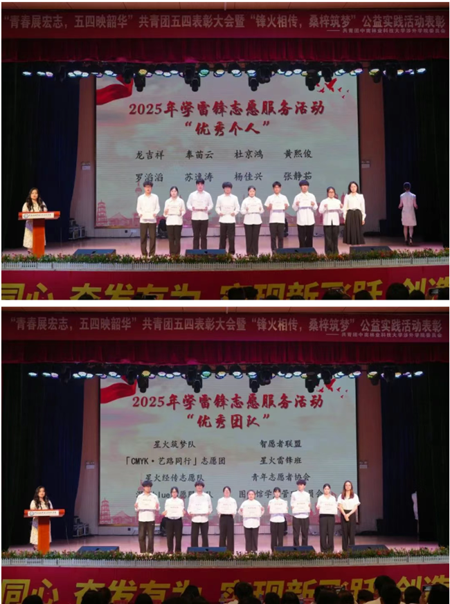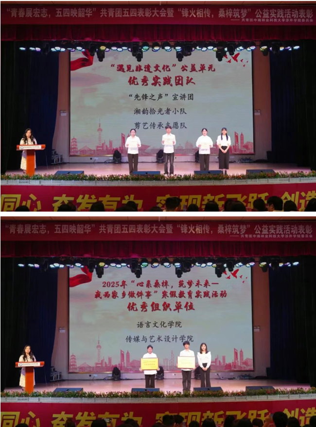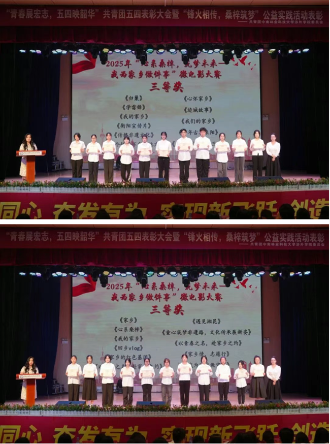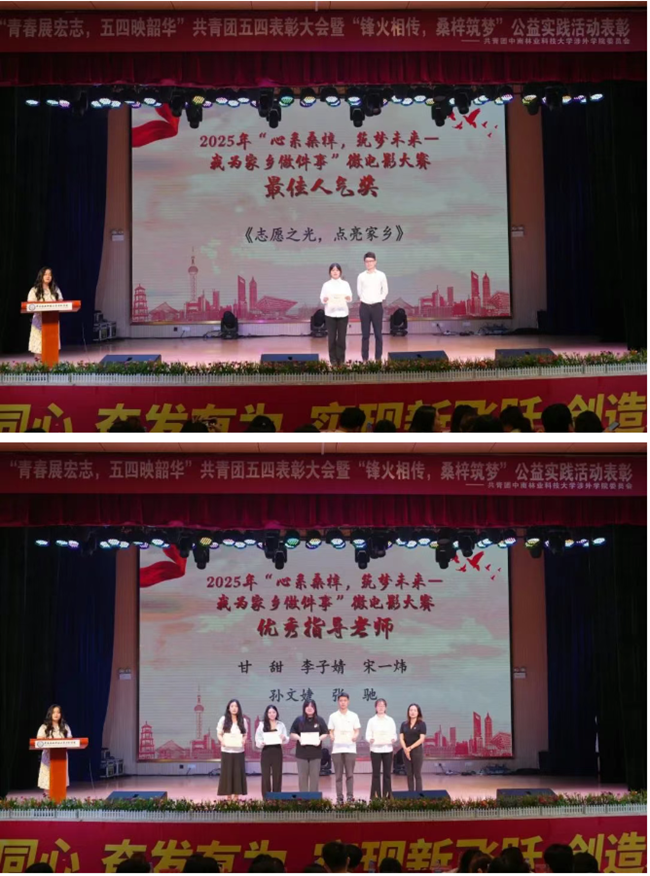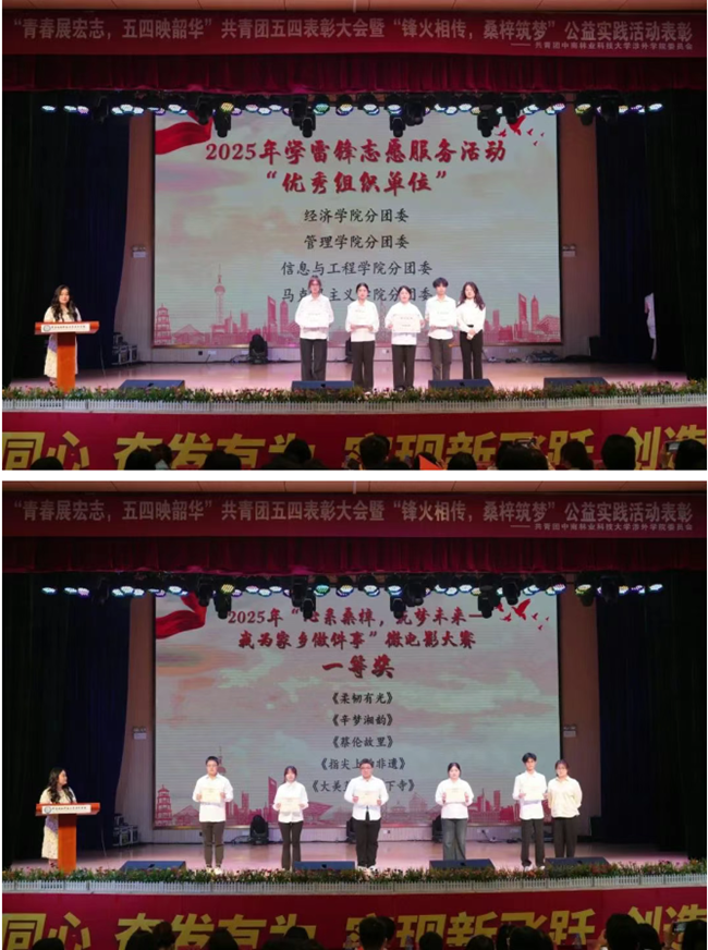 学院老师依次为2025年学雷锋志愿服务活动中的优秀个人、优秀团体、优秀组织单位以及2025年“心系桑梓,筑梦未来——我为家乡做件事”寒假教育实践活动微电影大赛及“遇见非遗文化”公益优秀实践单位的一等奖、二等奖、三等奖、最佳人气奖、优秀指导老师、优秀实践团队、优秀组织单位进行颁奖。