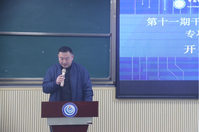 2024年2月27日上午,第十一期干训班暨学生工作专项培训班开班仪式在明德楼1310举行。学院党委副书记孟志波做动员讲话,他向大家提出大家要三个要求,即“学习、思考、实践”。他指出,“唯有不断学习,我们才能保持竞争力;通过批判性思维的培养,提高我们的判断力和决策能力;敢于创新,勇于实践,不断探索学生工作的最佳路径。”