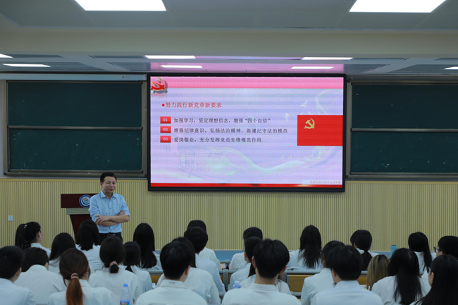 4月24日,中南林业科技大学涉外学院在明德楼1310开展了第20期发展对象培训班“党章与党内政治生活”专题党课,主题即“在新征程上,学习党章、遵守党章、贯彻党章、维护党章”,本次党课由学院党委书记李雄华同志主讲。