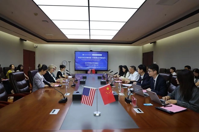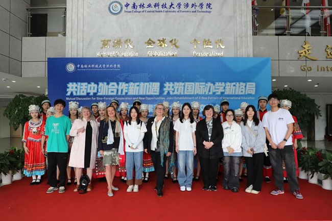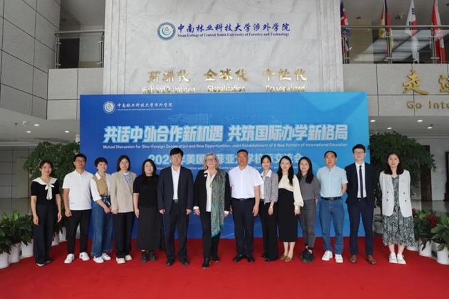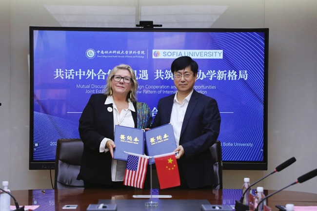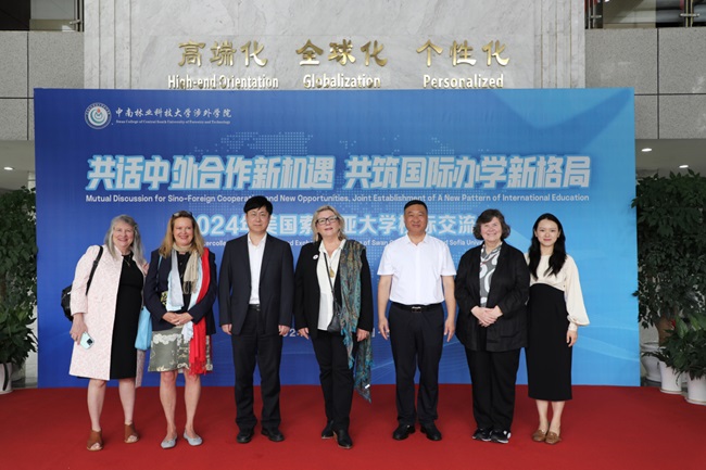 为进一步加强两校交流与合作,促进教育资源共享与优势互补,赋能国际化人才培养,学院在行知楼第一会议室举行校际交流会。美国索菲亚大学校长美国索菲亚大学校长卡罗尔·汉弗莱斯博士、协理副校长王雅俐,中南林业科技大学涉外学院董事长朱定强、院长周志宏、院长助理王佳怡,各二级学院和职能部门负责人参与会谈。会议由国际教育学院副院长梅宸主持。