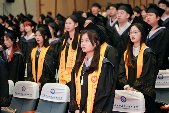 鲜衣怒马少年时,不负韶华行且知。6月11日,中南林业科技大学涉外学院2024届毕业典礼暨学位授予仪式在学术报告厅隆重举行。2024届毕业生即将揭开人生新篇章,踏上新的探索征程,全体师生在此共同见证这一重要时刻。学院领导朱定强、周志宏、李雄华、张康龙,学位评定委员会委员、导师代表、毕业生辅导员及2024届全体毕业生参加此次毕业典礼。典礼由学院党委副书记孟志波主持。