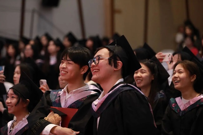 拨穗礼毕,结业已成。“友谊地久天长,千年万载,永远不忘.......",全场合唱《友谊天长地久》,笑看来日方长,情深绵长的歌声中,毕业典礼圆满落下帷幕。毕业生们纷纷站起身来,脸上情不自禁地展现出或感慨、或喜悦、或不舍的神情,他们相互拥抱,彼此祝福,尽情享受着这难忘的时刻。