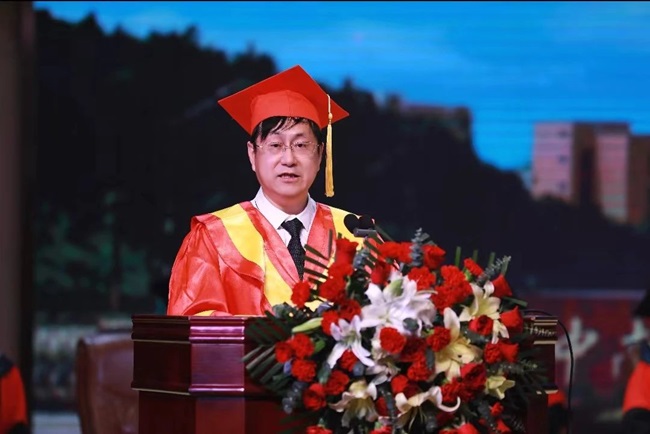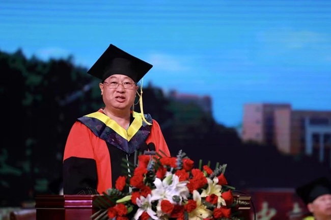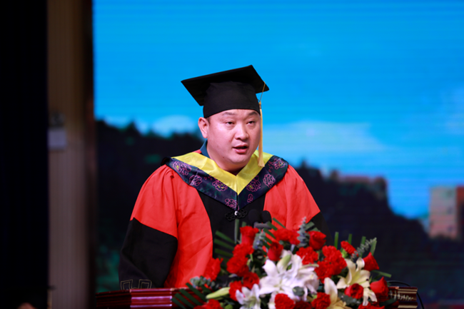 董事长朱定强在致辞中表示,对于青年一代来说,处在这个风云变幻的时代,变化无处不在,就此他诚挚地寄语2024届毕业生:一方面,他希望同学们秉坚守之心,悟善变之道。一是对党和国家的忠心,在推进强国建设、民族复兴伟业中贡献青春力量;二是对事业的专心,到择一事终一生,干一行专一行;三是对他人的善心,不当“精致的利己主义者”。另一方面,他希望同学们懂得“凡益之道,与时偕行”变通趋时,做出适应时代的判断和选择。一要仰望星空,紧跟时代潮流,以开放的心态拥抱多元文化,着眼大格局,秉持大胸怀,融入大世界;二要力求创新,勇于探索未知;三要脚踏实地,提升实践能力,成为一个思想的勇者,行动的巨人。昨日青春校园聚,今朝毕业征程起,祝愿毕业生们鹏北海,凤朝阳,又携书剑路茫茫!