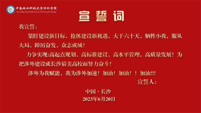 会上,副院长张康龙领誓,全体参战人员宣誓,充分展示了不惧挑战、不畏艰险的坚强意志,努力奋战60天,共同建设美丽涉外的信心和决心。