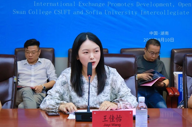 会上,中南林业科技大学涉外学院院长助理王佳怡先就本次校际交流会主题及主旨进行介绍,本次交流会主题即“国际交流促发展,开放办学助融合”,旨在促进中南林涉外与索菲亚大学之间合作交流,为未来在教育事业的发展与合作奠定坚实基础。