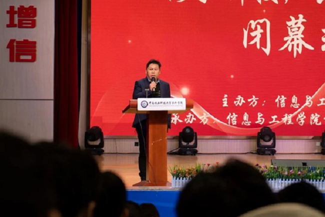 “本届科技节活动,主题论坛邀请到了中南大学、湖南大学、广西师范大学等高水平大学的高水平专家指导交流,为推动我院学术水平的提升给予了支持和帮助。”11月24日上午,中南林涉外学院副院长张康龙在闭幕式中表示,科技创新节是中南林涉外信工学院的品牌与特色活动,也是学院加强学科专业建设和积极推动人才培养模式创新与改革的重要载体。他表示,追求科学的道路上没有坦途,希望信工学院的同学们能够发扬崇尚科学,追求真理的精神,在未来的学习和工作中刻苦努力,把握时机,带着梦想远航。