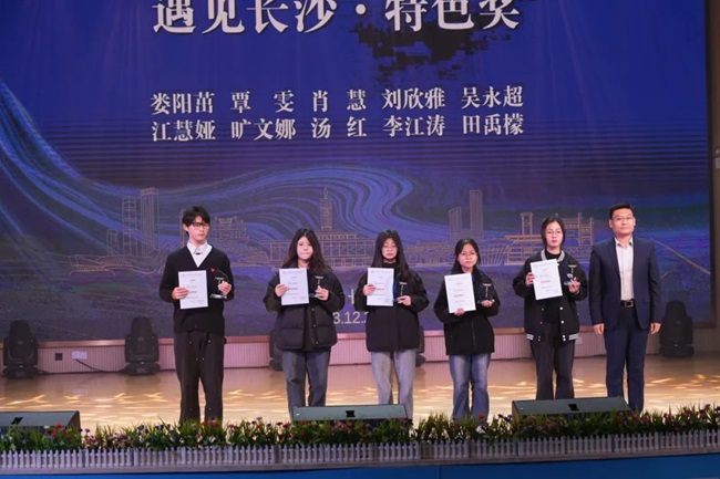 湖南师范大学学工部副部长罗元为“遇见长沙·特色奖”获奖代表颁奖。