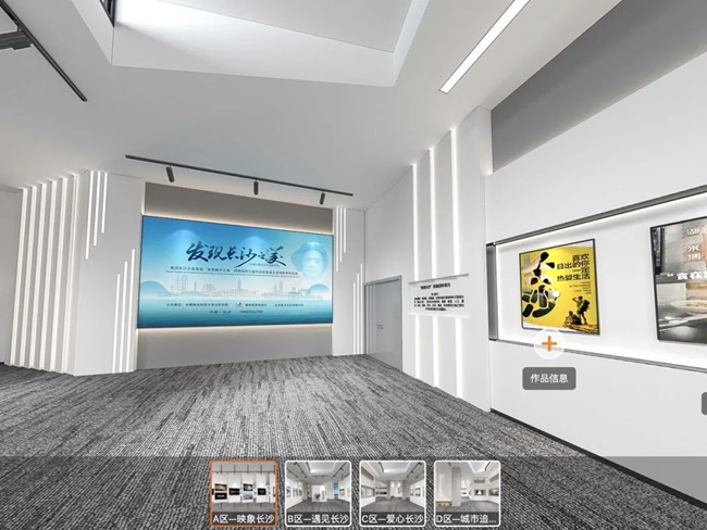 此次“发现城市之美”网络视听公益作品征集展示活动优秀作品展通过线上线下联动的方式,深入展现大美长沙。同时,主办方充分利用虚拟现实技术打造线上VR展厅,让观众能够自由穿梭在“映象长沙”、“遇见长沙”、“爱心长沙”和“城市追光计划”四个场馆,沉浸式、全方位云游展览。
