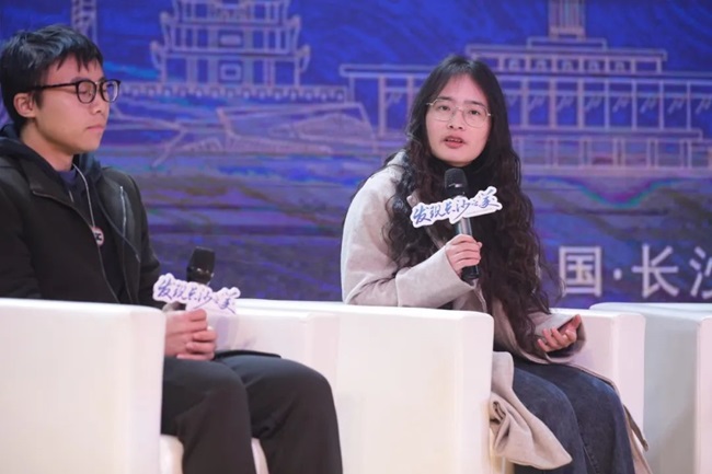 “大思政课不止于课堂之内,今天我们就通过分享环节与大家一起探讨关于‘美’的课堂。”进入论坛沙龙环节中,集结思政、艺术、媒体专家评审与获奖代表们面对面交流,湖南教育电视台副总监、网络视听内容策划审核专家资喻宇进行沙龙现场主持提问。“在长沙的大美空间,我想问一下4位获奖代表,你们的‘长沙印象’是什么?请用三个词来描绘你们心中的‘长沙之美’。”